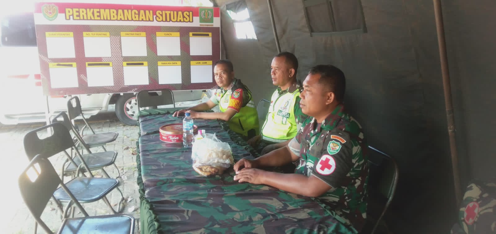 “Untuk Posyan berupa Check Point diisi oleh anggota Babinsa jajaran kodim 0602/Serang Beserta anggota kesehatan Dari Rumah sakit Kencana dan Ormas HIPAKAD untuk memberikan pelayanan kepada para pemudik, yang di dalamnya terdapat stand-stand seperti untuk istirahat, dan pengecekan kesehatan. Dan di sediakan juga minuman gratis,”