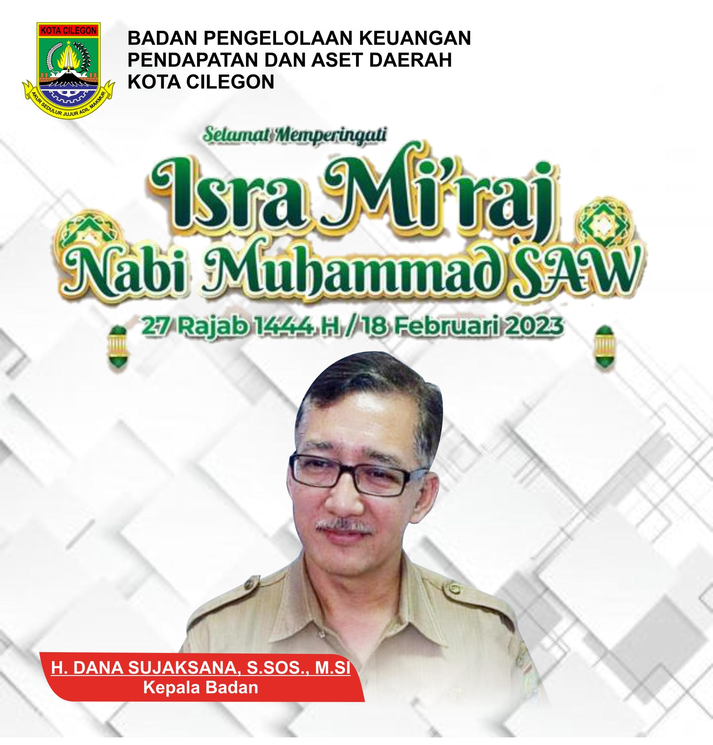 BPKPAD KOTA CILEGON MENGUCAPKAN SELAMAT MEMPERINGATI ISRA’ MI’RAJ NABI MUHAMMAD SAW 1444 H