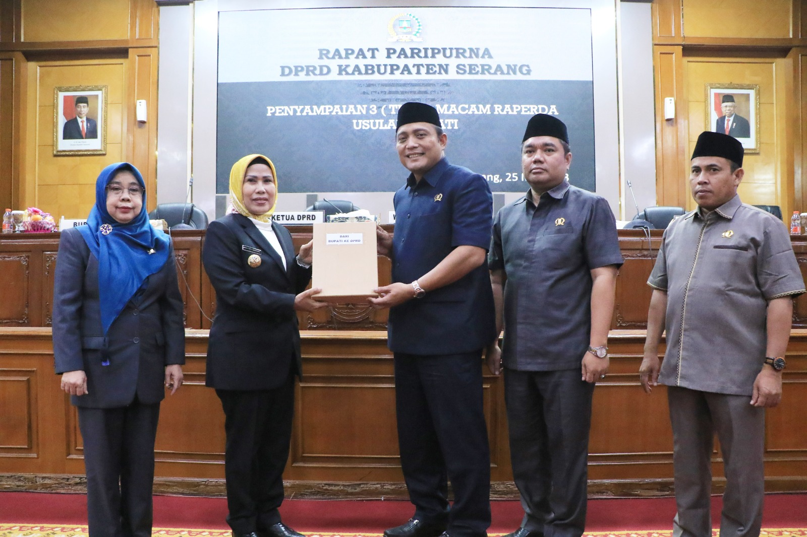 Bupati Serang Ratu Tatu Chasanah menyampaikan 3 (tiga) macam Rancangan Peraturan Daerah atau Raperda usulan Bupati pada Rapat Paripurna DPRD Kabupaten Serang di gedung dewan setempat. Ketiga Raperda meliputi Raperda Pengembangan dan Pembangunan Industri 2023-2043, Raperda Penyelenggaraan Sistem Pemerintahan Berbasis Elektronik, dan Raperda Pertanggungjawaban APBD 2022.