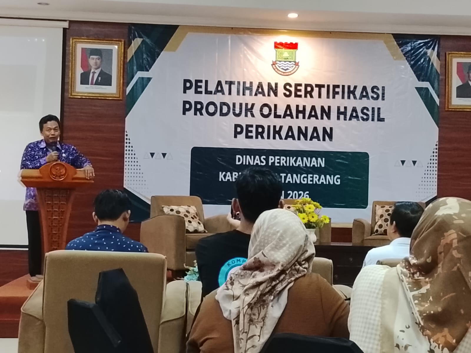 Pemerintah Kabupaten Tangerang melalui Dinas Perikanan terus mendorong peningkatan daya saing pelaku usaha sektor perikanan. Salah satu upaya tersebut diwujudkan melalui pelatihan sertifikasi produk olahan hasil perikanan yang digelar di Hotel La Semar, Kelapa Dua, Karawaci, Tangerang, pada Kamis, 5 Maret 2026.