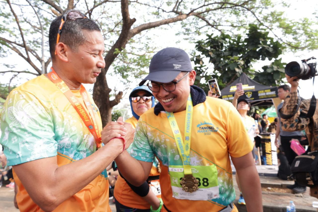 “Saya ikut yang 10 km, luar biasa Tangsel, rapih sekali dan antusiasme warga luar biasa. Tangsel luar biasa,” puji Sandiaga Uno.