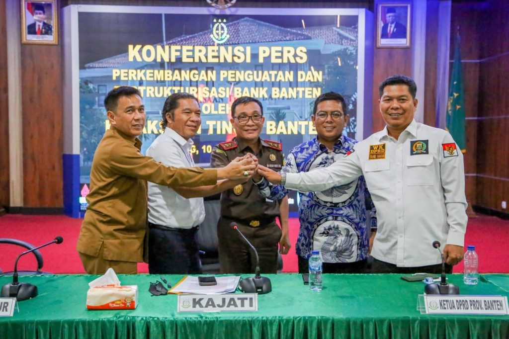 “Apresiasi kepada Kepala Kejati Banten yang telah berhasil memulihkan manajemen keuangan yang berkaitan dengan aspek hukum di Bank Banten. Ini merupakan tindak lanjut dari yang kita lakukan MoU dengan Kejati beberapa waktu lalu,” ungkap Al Muktabar dalam Konferensi Pers Perkembangan Penguatan dan Restrukturisasi Bank Banten yang di gelar di Kejati Banten, Senin (10/10/2022).