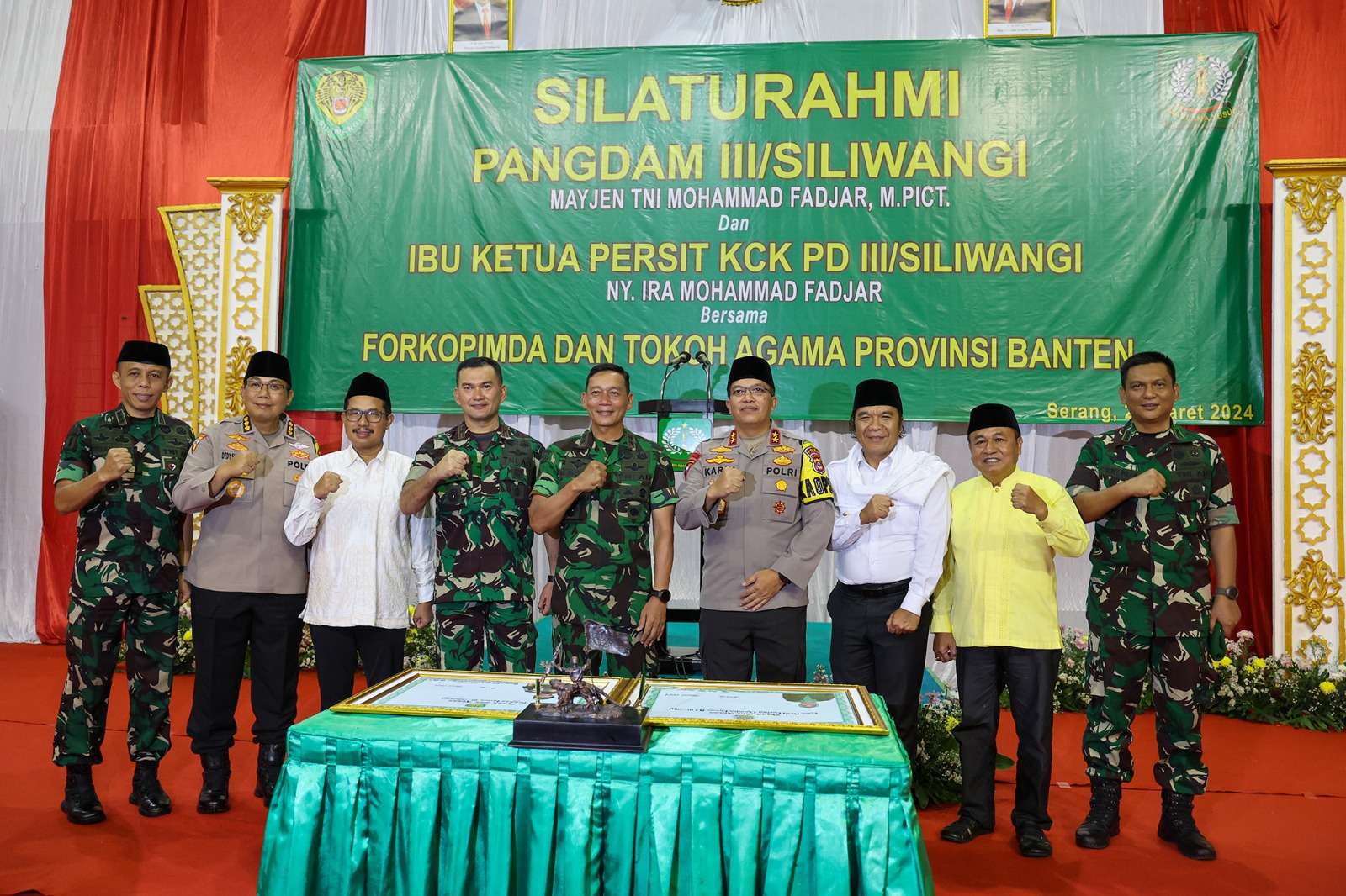 SERANG (tajukbanten.co.id) – Penjabat (Pj) Gubernur Banten Al Muktabar menghadiri Silaturahmi Panglima Daerah Militer III/Siliwangi Mayjen TNI Mohammad Fadjar dengan Forum Koordinasi Pimpinan Daerah (Forkopimda) dan Tokoh Agama Provinsi Banten. Buka Bersama dilaksanakan di GOR Markas Komando Resimen (Makorem) 064/Maulana Yusuf Jl. Maulana Yusuf No.9 Kota Serang, Rabu (20/3/2024).