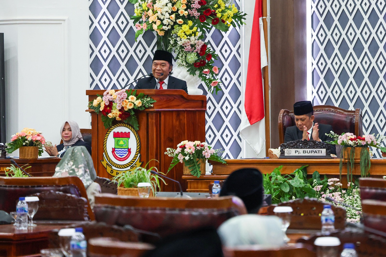 Penjabat (Pj) Gubernur Banten Al Muktabar mengajak seluruh jajaran Pemerintah Kabupaten (Pemkab) serta masyarakat Tangerang untuk bersama-sama menjaga stabilitas daerah di tengah kondisi geopolitik dunia yang tidak menentu. Hal itu diungkapkan Al Muktabar saat menghadiri Paripurna Istimewa Hari Jadi ke-391 Kabupaten Tangerang di Kantor DPRD Kabupaten Tangerang, Tigaraksa, Jumat (13/10/2023).