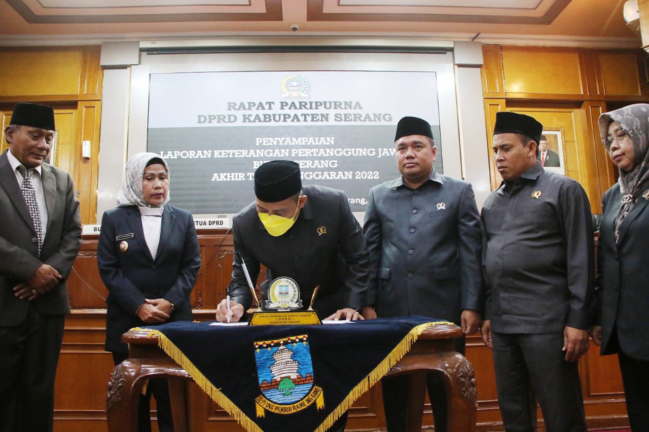 Hal itu tertuang dalam Penyampaian Laporan Keterangan Pertanggungjawaban (LKPj) Bupati Serang Akhir Tahun 2022 pada Rapat Paripurna DPRD Kabupaten Serang, Kamis (30/3/2023).