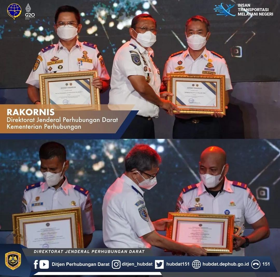 Penghargaan ini diberikan langsung Dirjen Perhubungan Republik Indonesia, dalam Rakornis Transportasi Darat yang mengusung tema “Sinergi Transportasi Darat Menuju Indonesia Tumbuh dan Indonesia Tangguh.