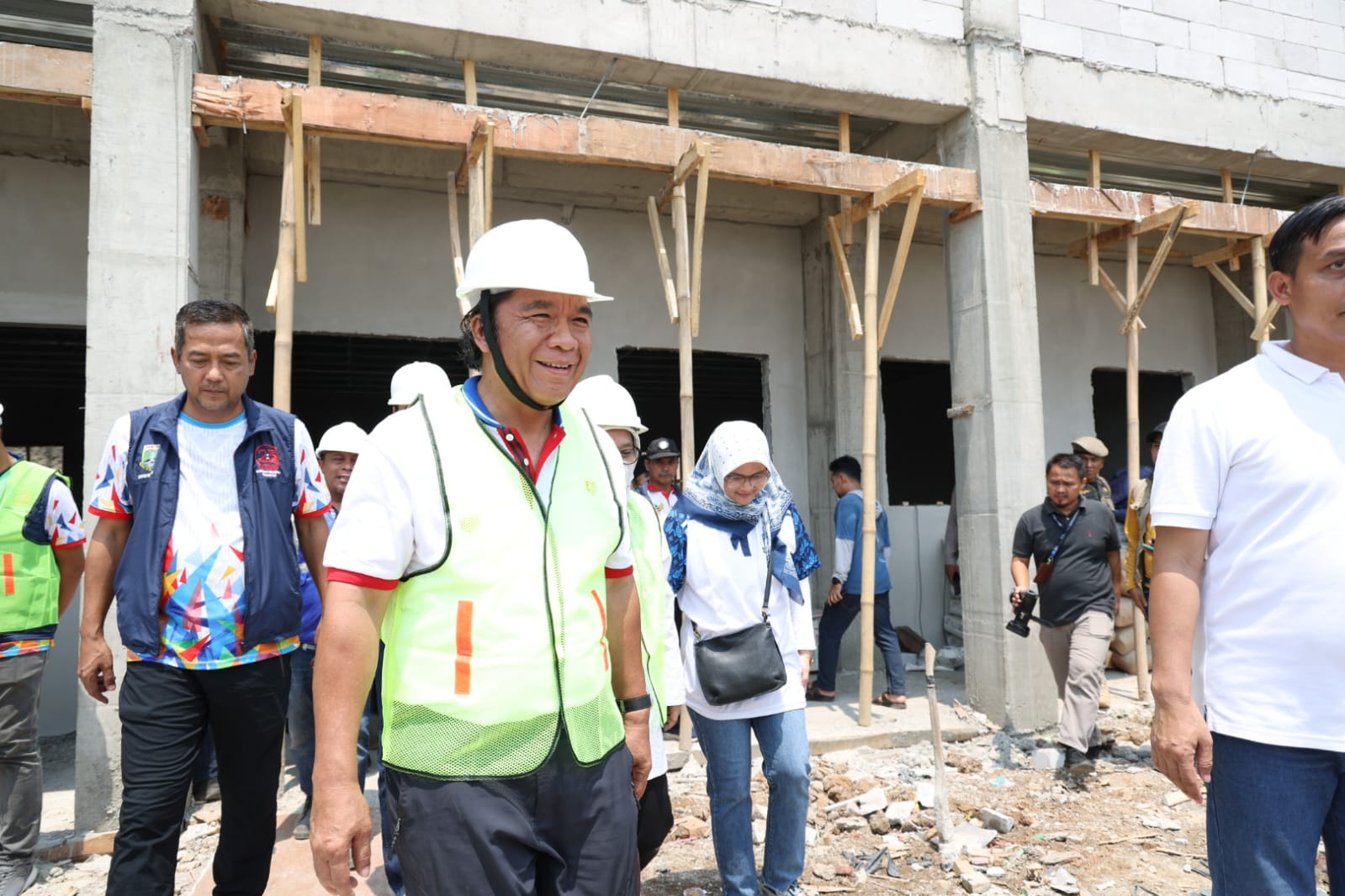 Penjabat (Pj) Gubernur Banten Al Muktabar meninjau pembangunan Unit Sekolah Baru (USB) Sekolah Kejuruan di Kecamatan Cipondoh, Kota Tangerang, Minggu (29/10/2023). Hal ini merupakan upaya tingkatkan partisipasi sekolah, pembangunan USB tersebut senilai Rp8,933 miliar