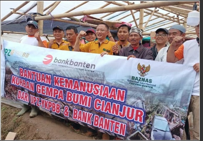 TANGERANG (tajukbanten.co.id) – (30/11/2022) PT Bank Pembangunan Daerah Banten Tbk (Bank Banten) melalui Unit Pengumpul Zakat Yayasan Kesejahteraan Pegawai Bank Banten (UPZ-YKPBB) bersama Baznas Provinsi Banten menyalurkan bantuan kemanusiaan kepada korban bencana gempa bumi di Kabupaten Cianjur, Jawa Barat.