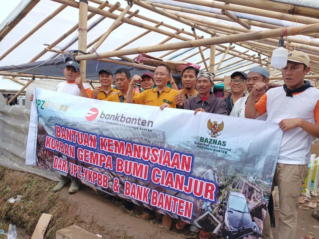 Tangerang – (30/11/2022) PT Bank Pembangunan Daerah Banten Tbk (Bank Banten) melalui Unit Pengumpul Zakat Yayasan Kesejahteraan Pegawai Bank Banten (UPZ-YKPBB) bersama Baznas Provinsi Banten menyalurkan bantuan kemanusiaan kepada korban bencana gempa bumi di Kabupaten Cianjur, Jawa Barat.